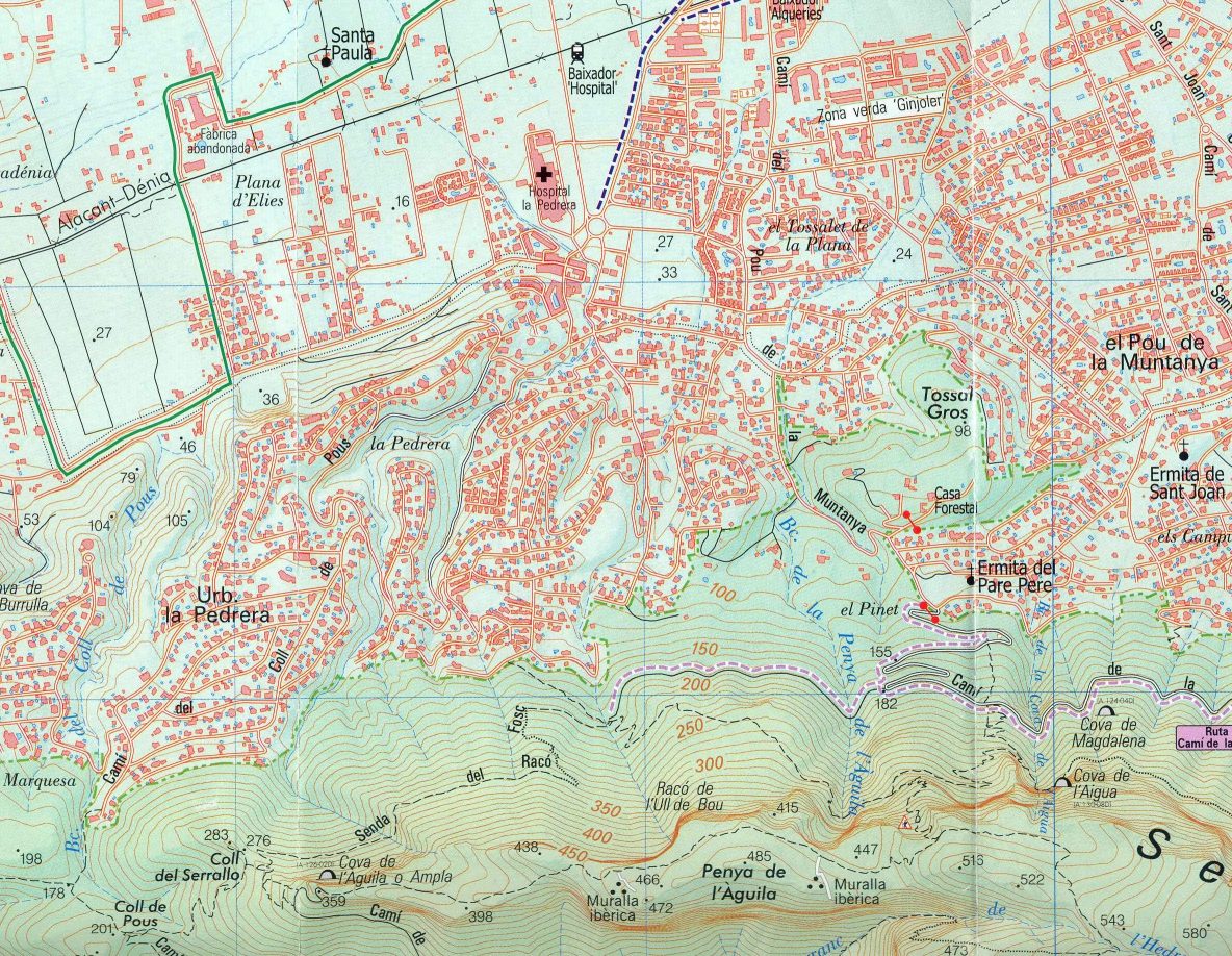 Mapa muy detallado a gran escala de la sierra de Bernia.