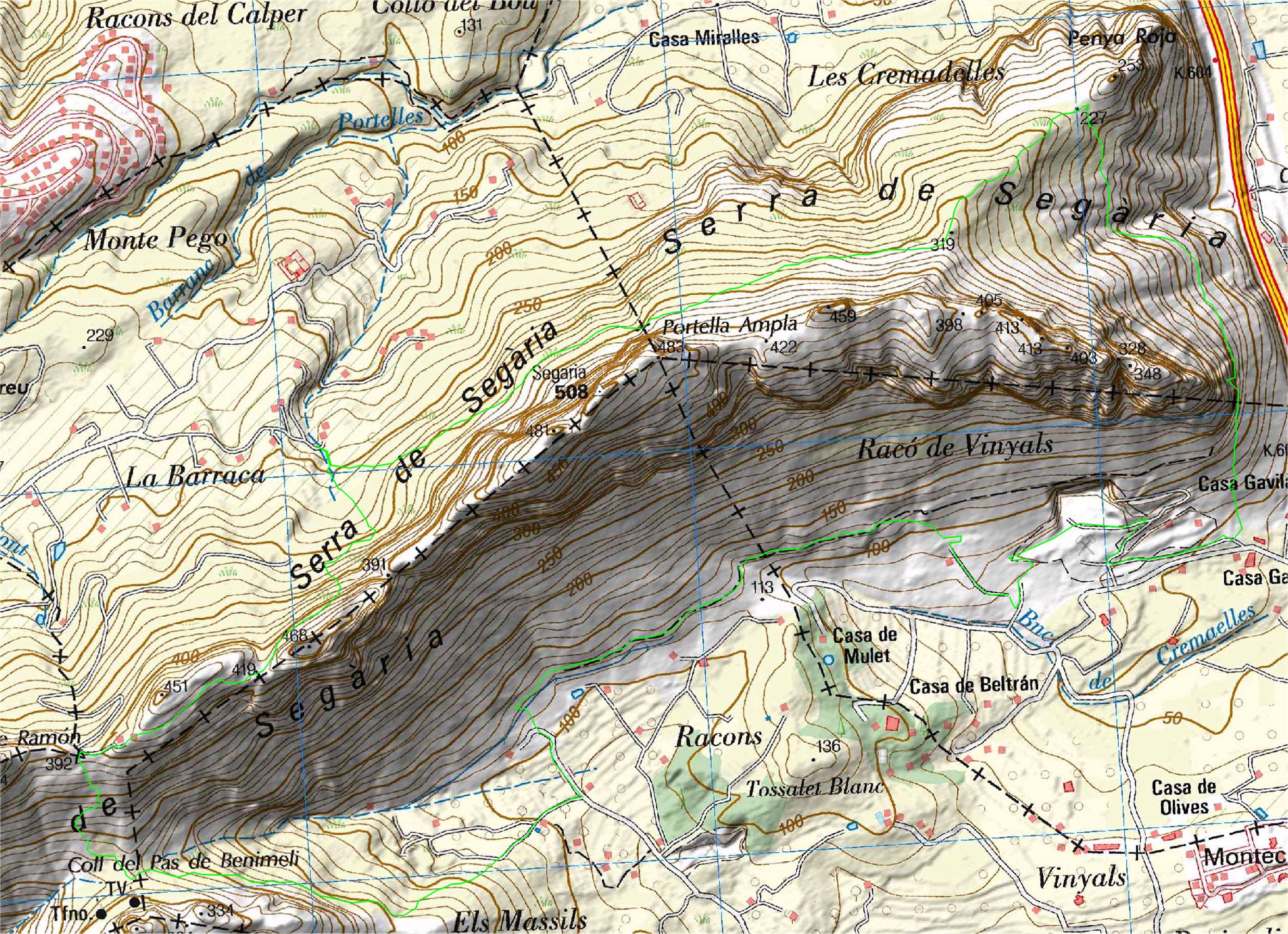 Plano detallado de la ruta de Segaria PR-CV 415.