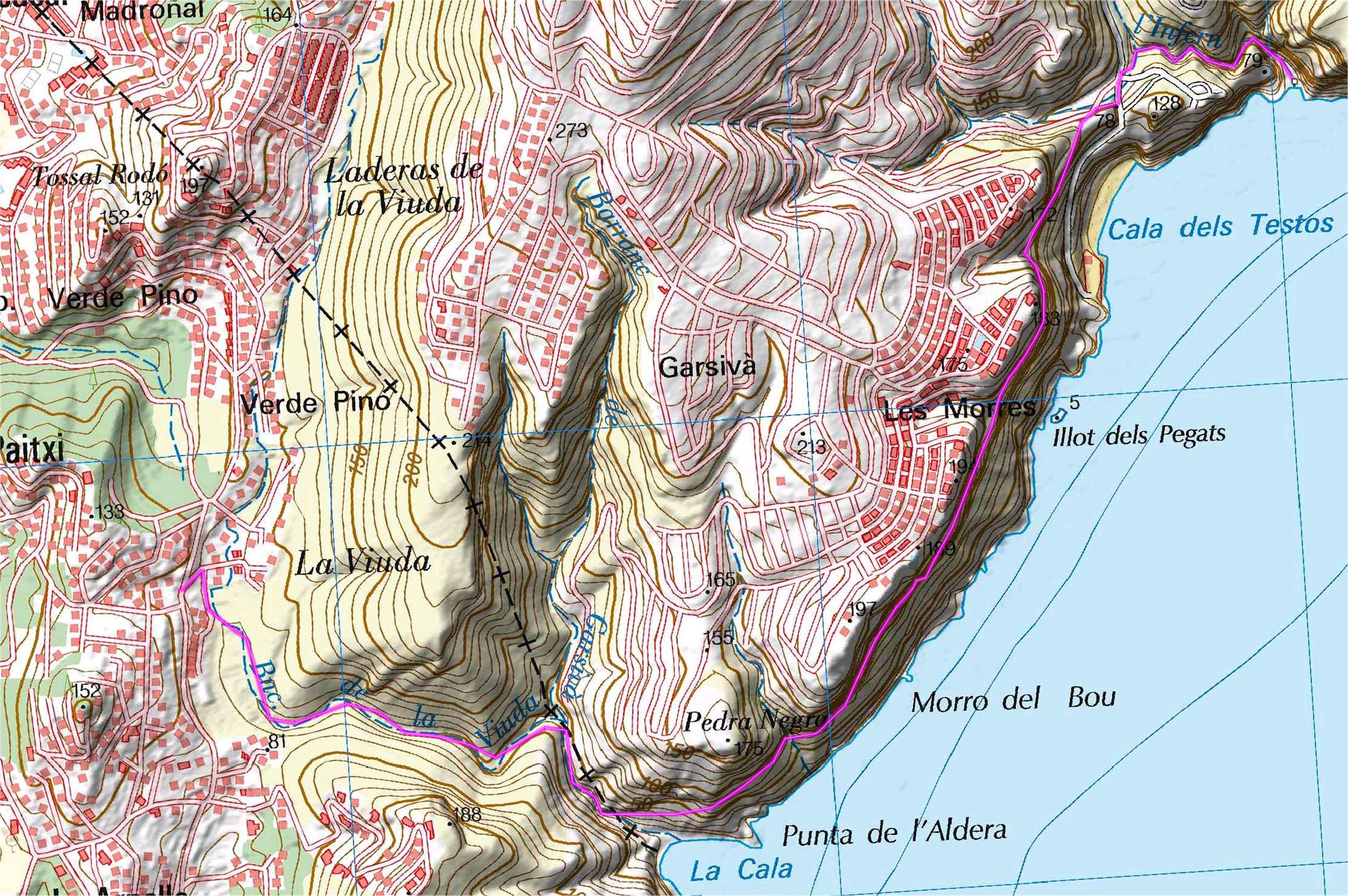 Mapa muy detallado a gran escala de la sierra de Bernia.